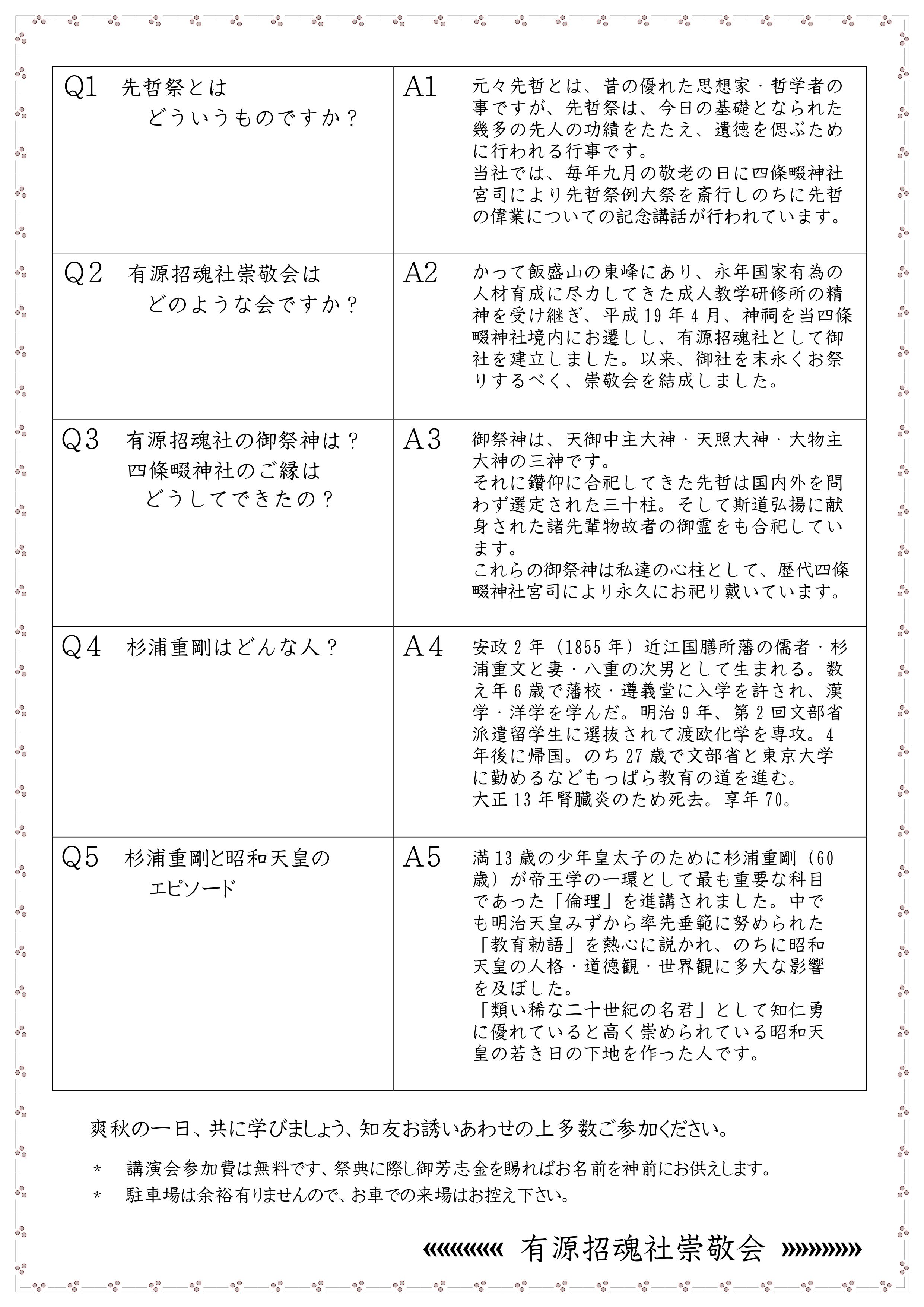 先哲祭御参列のみ、講演会のみのご参加も受け付けております。